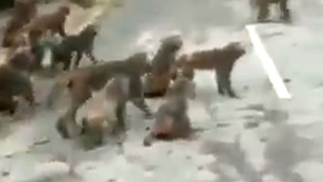 Ein Amateurvideo zeigt einen brisanten Revierkampf unter Affen. Dabei geht es ganz schön hitzig zu. Die Languren scheuen sich nicht einmal davor ein einzelnes Tier in Überzahl zu attackieren.