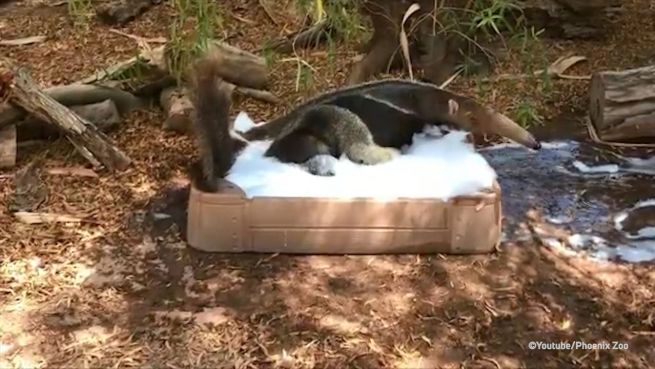 Es geht doch nichts über ein gepflegtes Bad! Das denkt sich auch Ameisenbär Beaker im Zoo Phoenix.