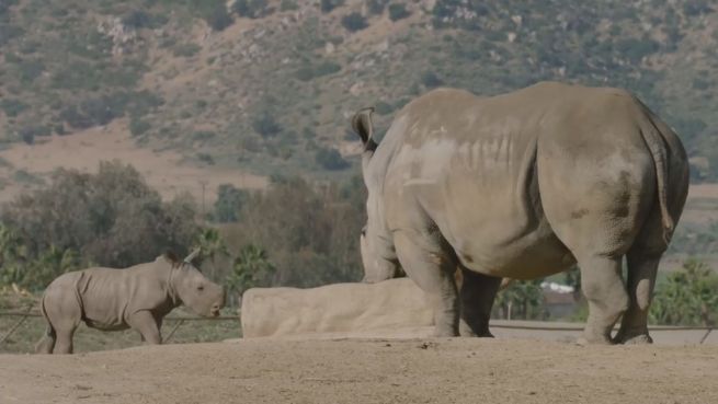 Im Zoo können die gefährdeten Breitmaulnashörner nicht so viele Kinder bekommen, wie in der Wildnis. Forscher fanden die Ursache im Zoofutter. Zum Glück, denn sonst könnte dieses Baby-Nashorn nicht so fröhlich durch sein Gehege stapfen.