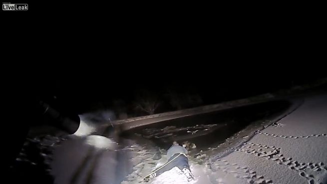 Die Polizei der US-amerikanischen Stadt Pennington war zu einem Teich gerufen worden, in dem ein Hund durch das Eis gebrochen war. Officer Vorhees unternahm, nur mit einem Seil gesichert, einen eisigen Rettungsversuch. Bald konnte die Besitzerin ihre 'Nisel' wieder im Arm halten.