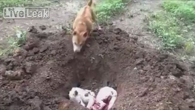 EIn Amateurvideo aus dem US-amerikanischen Texas zeigt ein erstaunliches Hundeverhalten. Ein Vierbeiner bedeckt hier einen toten Artgenossen mit aufgeworfenem Sand. Nur eine Dressur?