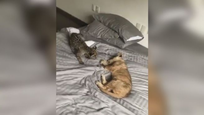 Diese beiden jungen Jaguare sind nicht nur süß, sie haben es auch faustdick hinter den Ohren. Dass sie bereits scharfe Krallen haben, hält sie nicht davon ab, sich beherzt zu balgen.