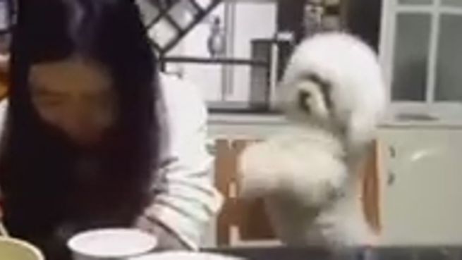Wenn Hunde am Tisch betteln, kann das schon mal ziemlich nervtötend werden. Dieser kleine Pudel aus China wird dabei sogar richtig brutal.