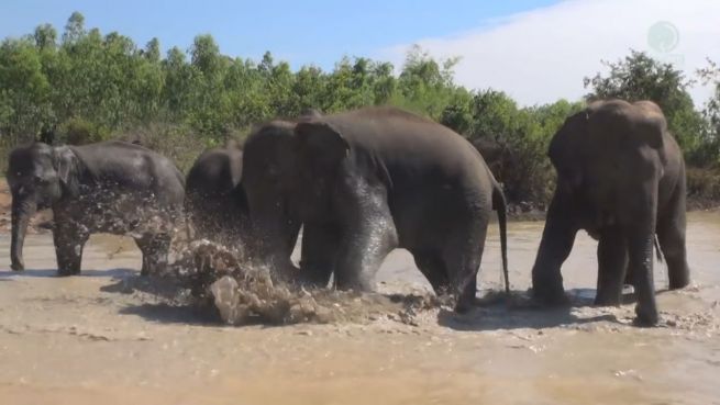 Diese Elefanten bettelten in Thailands Straßen um Essen, ein artgerechtes Leben kannten sie bisher nicht. Eine Tierschutzorganisation hat die Tiere nun in einen Park gebracht, wo sie erstmals in einem Fluss baden konnten.