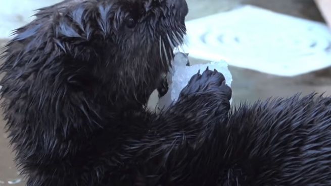 Der kleine Seeotter-Welpe Lincoln ist ein leidenschaftlicher Eis-Esser. Er verschlingt es massenweise und sieht dabei einfach unglaublich süß aus.