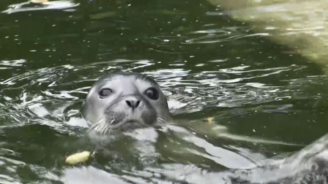 Nachwuchs im Zoo Osnabrück. Seehundweibchen Biene hat nach 11 Monaten ihr Baby Fenja zur Welt gebracht. Das Jungtier ist wohlauf und erkundet neugierig sein Zuhause.