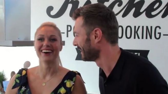 Im Düsseldorfer Areal Böhler hat TV-Koch René Schudel zum gemeinsamen Kochen eingeladen. Mit von der Partie: Ruth Moschner und Jochen Schropp. Beide Moderatoren wurden hinter dem Herd ziemlich gesprächig.