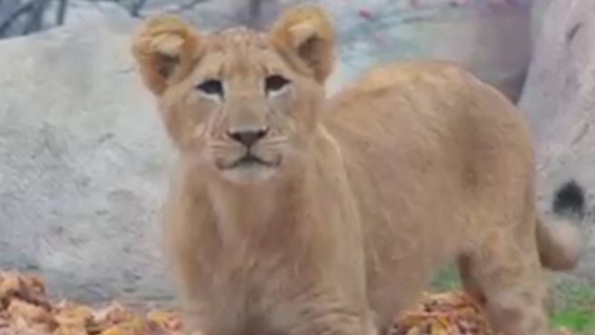 Der Zoo Dallas beherbergt seit sieben Monaten ein Löwenbaby, das nun Gefallen am Herbst gefunden hat. Die kleine Raufboldin Bahati genießt es, in Laubbergen zu spielen und zwischendurch an ihren Eltern zu knabbern.