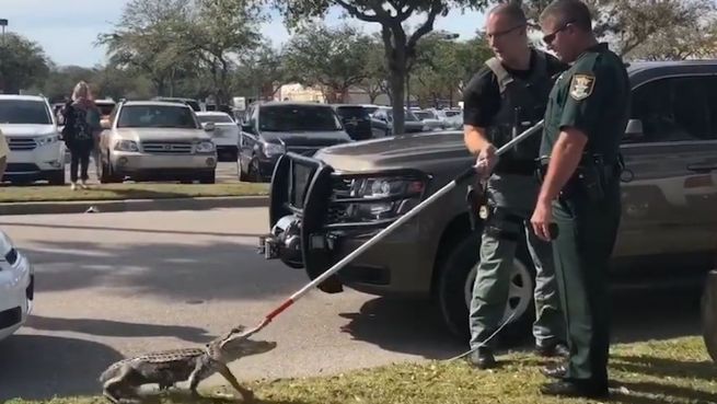 Auf einem Parkplatz in Miami fand eine besondere Festnahme statt: ein junger Alligator hatte es sich unter einem Auto bequem gemacht. Zwei mutige Beamte der örtlichen Polizei nahmen sich des Kroko-Problems an.