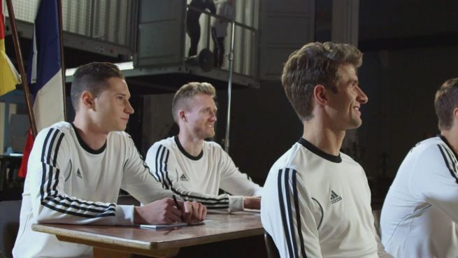 Am Rande eines Volkswagen-Werbedrehs zur Europameisterschaft müssen die Herren Schürrle, Draxler und Müller bei einer strengen Französisch-Lehrerin noch einmal die Schulbank drücken. Doch dann eskaliert die Situation.