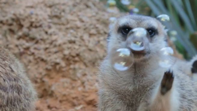 Das Unterhaltungsprogramm im Zoo von Dallas hatte zum Ende des Jahres einiges zu bieten. Die kleinen Erdmännchen durften auf Seifenblasen-Jagd gehen. Doch obwohl sie sehr flink sind, kamen sie meist zu spät.