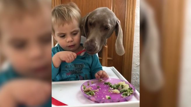 Hunde dürfen oftmals vom Teller des Besitzers etwas abhaben. Das wird nur problematisch, wenn man seinen Kindern gerade nahelegen möchte, selbst das Gemüse zu essen.