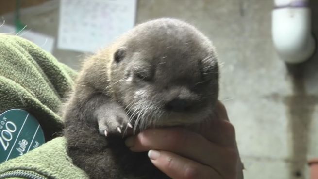 Baby Juno ist mit seinen Eltern Thelma und Eddie einer der drei letzen Seeotter im 'Oregon Zoo'. Am 25. September gab es dort eine Veranstaltung zum Schutz der geselligen Tiere.
