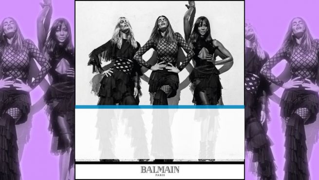 'Balmain' landet einen Kampagnen-Coup. Für die Kollektion Frühjahr/Sommer der Franzosen werben die drei großen Model-Ikonen aus den 90er Jahren.