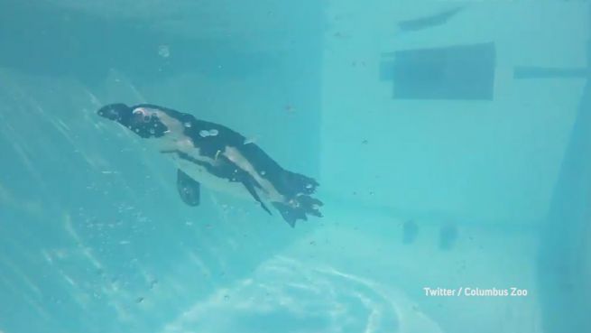 Im Columbus Zoo in Ohio lassen sich die Pfleger immer wieder abwechslungsreiche Aktivitäten für die Tiere einfallen. Dieses Mal spielen Humboldt-Pinguine mit einer Frisbee.