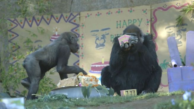 Wenn ein doppelter Geburtstag ansteht, dann ist auch bei den Gorillas im 'San Diego Zoo' eine große Party angesagt. Baby Lesli feierte ihren ersten Geburtstag zusammen mit Gorilla-Oma Vila, die mittlerweile 60 Jahre auf dem Buckel hat.