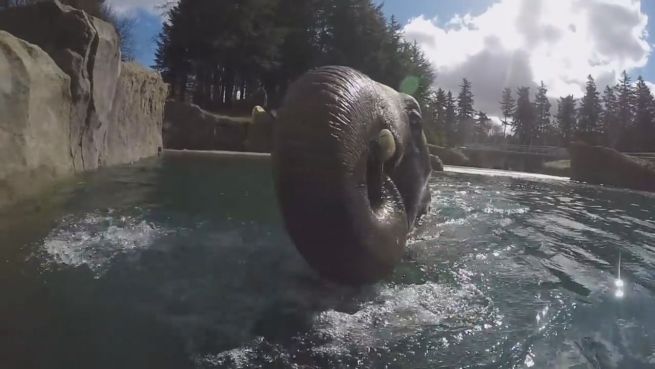Mit dem Frühlling fängt auch die Badesaison an - zumindest für die Elefanten im Zoo von Oregon. Elefantenbulle Samudra nimmt uns mit zum Plantschen.